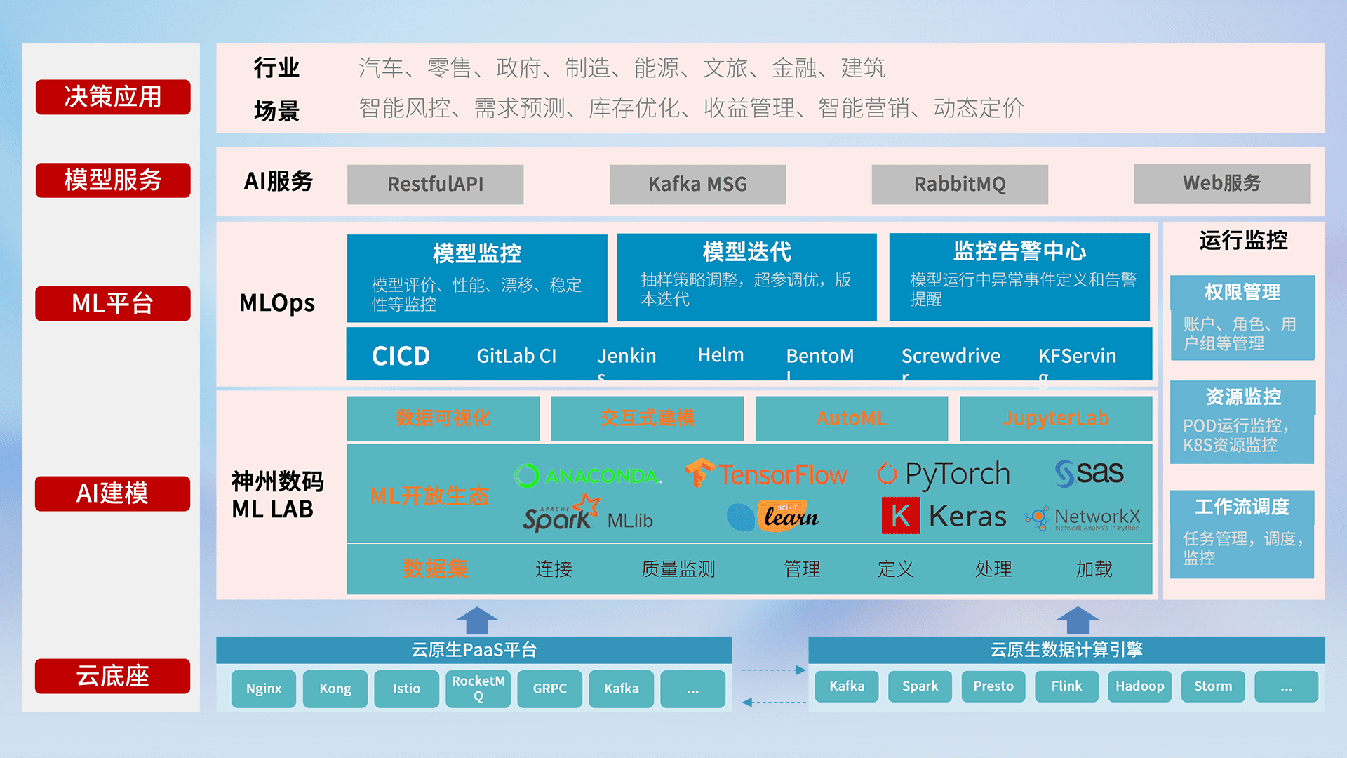 数据+模型双引擎驱动,,,面向智能服务场景,,,快速灵活利用AI技术,,,支持业务决策,,,助力企业智能化转型破局。。